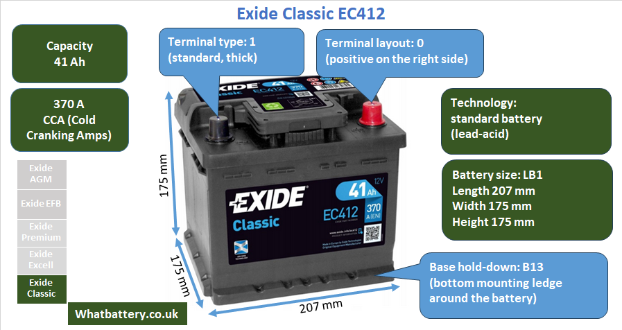 Overall, the Exide EC412 is a solid, reliable battery for budget-conscious drivers who value simplicity and efficiency. Its compact LB1 size, dependable performance, and compatibility with a wide range of European cars make it a strong candidate for those replacing a standard lead-acid battery in a vehicle without advanced electrical systems. Backed by Exide’s reputation in the battery market, it’s a sensible and safe choice for everyday use.