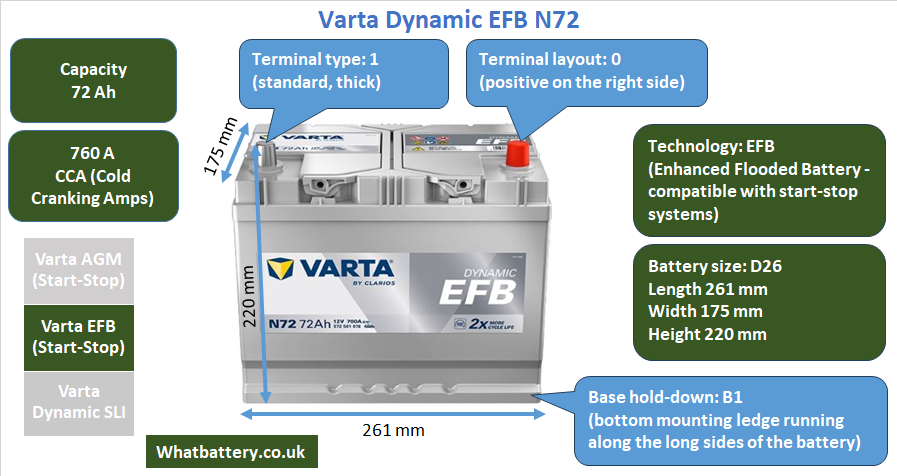 Varta N72 – Varta Blue Dynamic EFB batteries