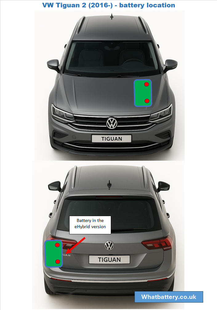 If you’re still unsure which battery fits your VW Tiguan , or if you want to help others in their selection, please send us a photo of your current battery in the comment section at the bottom of the page. You can also send the picture to contact@whatbattery.co.uk (we will place it in the comments to also help other users). Be sure to specify the car model, year, type, as well as the engine capacity and power. We’ll do our best to assist you!